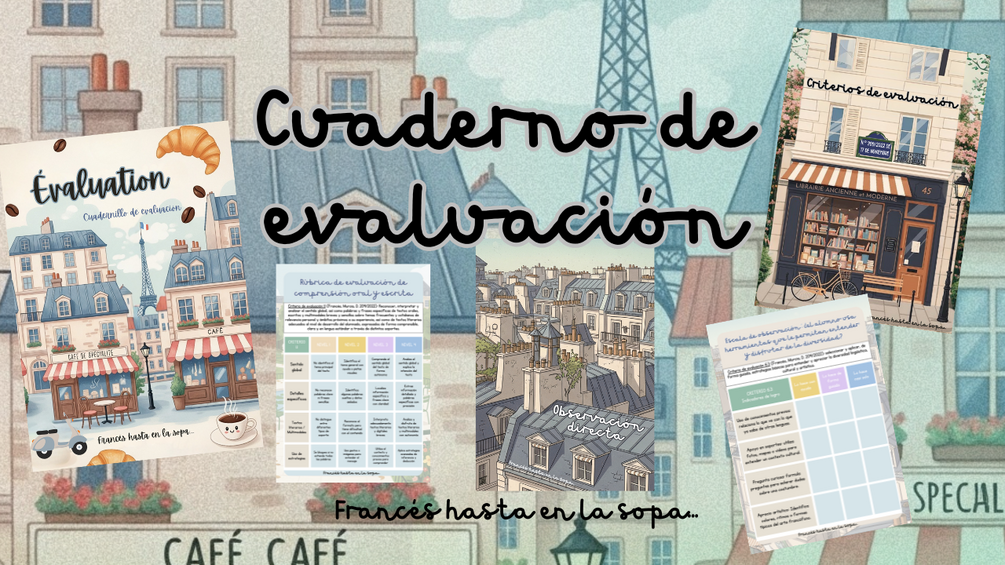 Bonjour ! Hoy os muestro un superrecurso que he creado para llevar un buen seguimiento de mis alumnos. Se trata de un CUADERNILLO DE EVALUACIÓN con 28 instrumentos de evaluación, además de portadas y otras cosillas (un total de 62 páginas).